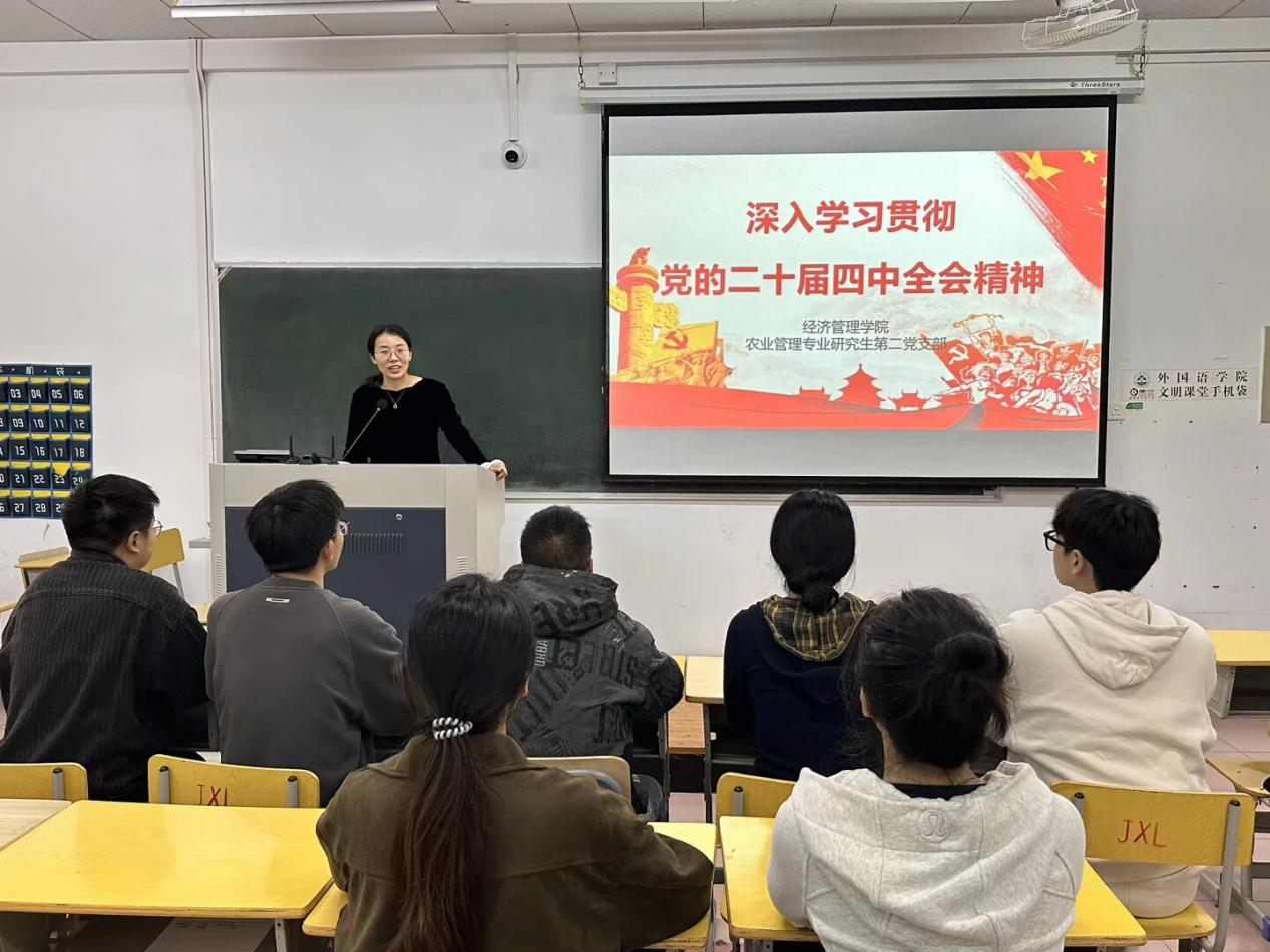 我们将以全会精神为指引,聚焦学科发展、专业建设和人才培养核心任务,立足岗位履职尽责,主动担当作为,不断提升教学科研水平和社会服务能力,以个人工作的提质增效推动支部工作迈向新台阶,为学校高质量发展、为推进农业农村现代化和乡村全面振兴、为开创中国式现代化建设新局面贡献支部的智慧和力量。
