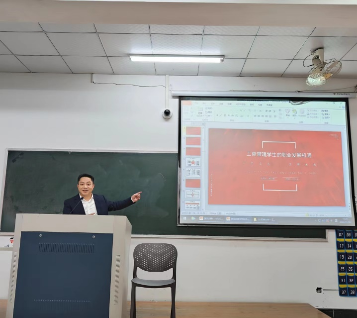 聘任仪式结束后,吴教授作了题为“工商管理学生的职业发展机遇”的报告。报告从工商管理未来职业发展、管理的重要性、自身学习工作经历等话题开始,以“分享感悟、一起学习、共同进步”为主题,分享了自己考研、工作、考编的经历,深入浅出的剖析了工商管理专业良好的发展前景。以宏观、微观相结合的视角,古代、现代相结合的案例,系统的分析了作为一个管理者应该具备的能力素养。还从社会责任与家国情怀的角度勉励各位学子躬身实践、踔厉奋发,学好专业基础知识,培养自己的独特竞争力。