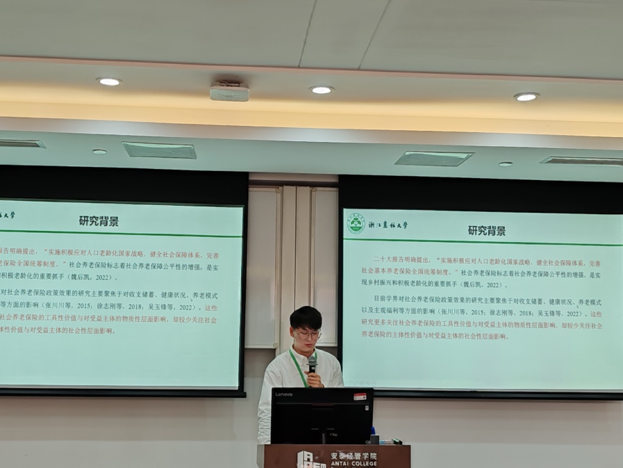 我校best365手机版官方网站2021级农业管理硕士研究生吕良瑞和2023级农业经济管理硕士研究生许江帆分别就《社会养老保险对农村老年人社会适应的影响—基于中国老年社会追踪调查的实证研究》和《粮食安全背景下农业化学投入品减量的生态补偿标准研究—基于作物差异的分析》在“分论坛五:老龄化、教育与健康”和“分论坛四:绿色与低碳”分会场中进行主题演讲,其中许江帆同学担任分论坛下半场主持。本次论坛由院长助理杨建辉副教授带队,并在 “分论坛二:数字经济”分会场中担任点评专家。参加本次论坛,展现了best365官网的研究生研究水平,拓宽了研究生的学术视野,助推了研究生科研能力的培养,也加强了与兄弟院校研究生之间的沟通交流。