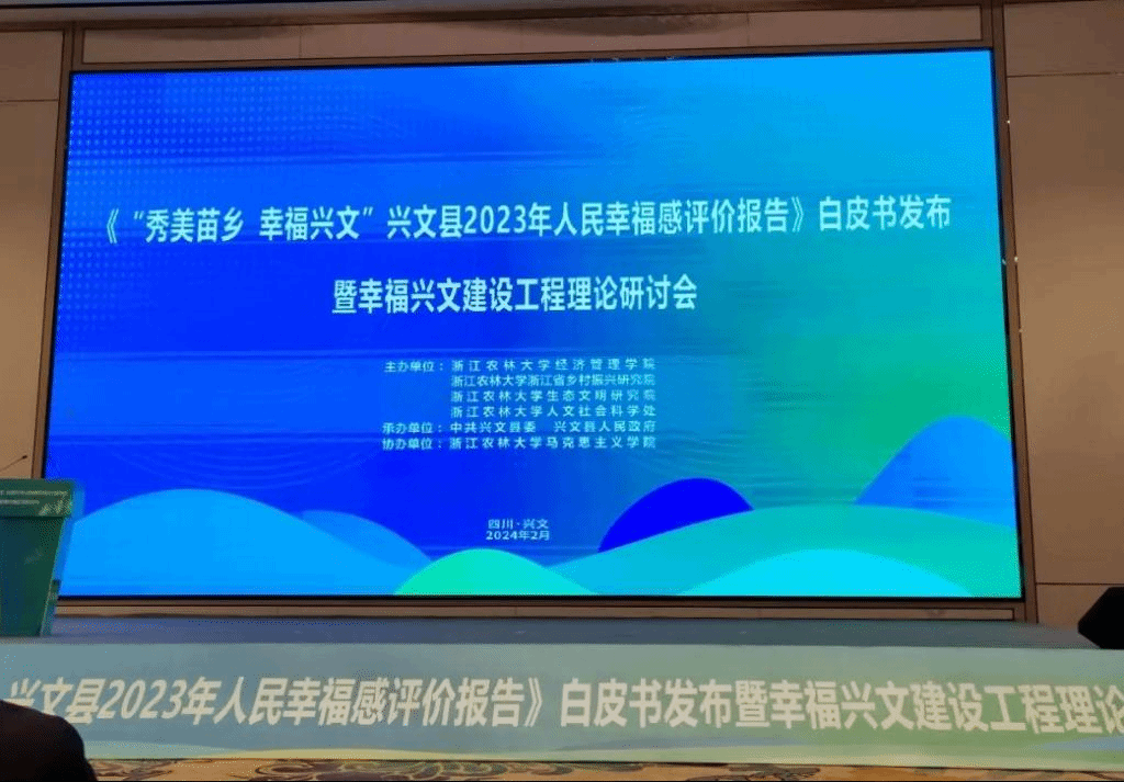 2月27日,由best365手机版官方网站与浙江省乡村振兴研究院、生态文明研究院、人文社会科学处主办,中共兴文县委、兴文县人民政府承办,马克思主义学院协办的《“秀美苗乡 幸福兴文”兴文县2023年人民幸福感评价报告》白皮书发布暨幸福兴文建设工程理论研讨会在四川省宜宾市兴文县举行。
