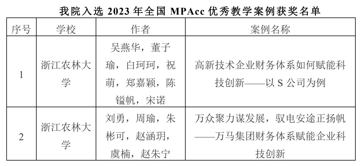 近日,全国会计专业学位研究生教育指导委员会公布了2023年会计硕士专业学位优秀教学案例评选结果。best365手机版官方网站吴燕华团队和刘勇团队的2项案例成功入选全国MPAcc优秀教学案例库。