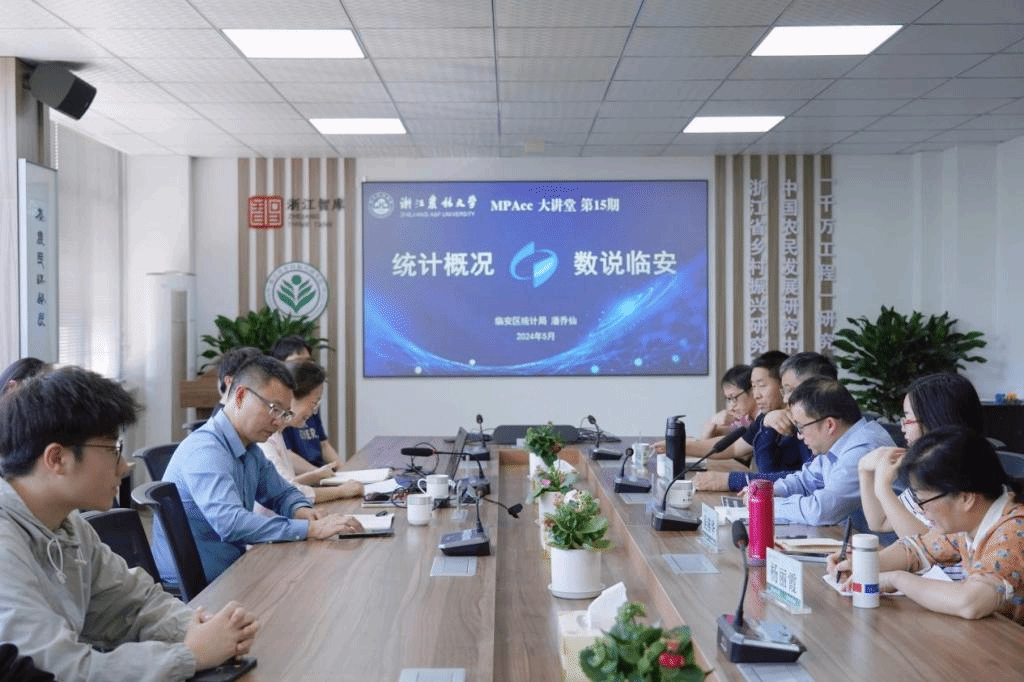随后,潘局长通过“科创、生态、文化”三张金名片描述临安的经济社会发展情况。她强调,会计理论更侧重对微观企业数据的分析,而在实务中了解宏观经济环境的经济形势是极为重要的。此外,潘局长还详细介绍了临安的人才政策,进一步加深师生对临安统计工作的了解。