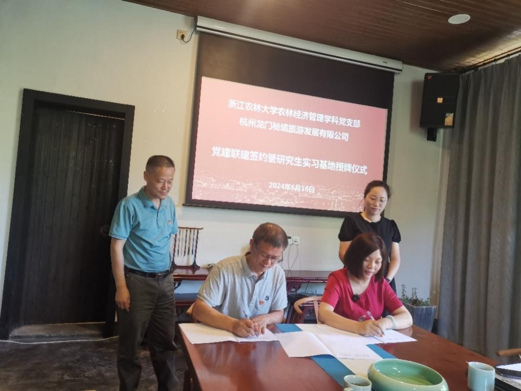 为了更好推进学科专业支部一体化建设,发挥农林经济管理学科专业优势,切实提升农经支部的党员示范力、党建引领力、科研服务力、事业发展力、社会影响力,真正让党建引领学科业务发展,学科党支部与杭州龙门秘境旅游发展有限公司签订了党建联建协议。通过开展党建联建工作,双方将通过党务共联、项目共研、活动共办、平台共建、人才共育,最终实现资源共享、优势互补、互帮联建、产研相融,共同发展。