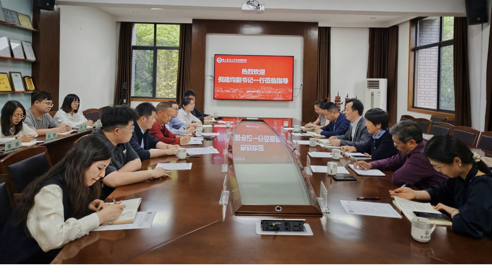 4月16日,校党委副书记倪建均带队走访调研best365手机版官方网站。宣传部、学工部、研工部、保卫部、团委等部门负责人陪同,best365手机版官方网站党委书记陈劲松、分管研究生教育教学负责人、分管学生工作负责人、全体辅导员参加座谈会议。
