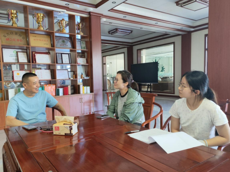 在湖州黄杜村,实践队员们通过走访村干部与乡村企业家,了解到黄杜村如何因地制宜发展白茶产业。在做好白茶产业的同时,村里也大力吸引大学生返乡,通过返乡青年的智慧力量大力发展挖掘茶文化,发展茶文旅旅游业,真正做到“一片叶子富了一方百姓”。