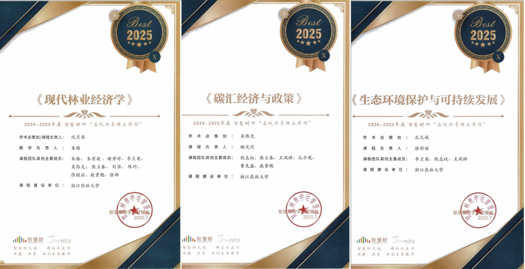 近期,国内领先的在线教育平台“智慧树网”传来佳音。由本院优秀教学团队精心研发的《现代林业经济学》《碳汇经济与政策》以及《生态环境保护与可持续发展》三门课程,凭借前沿的课程内容、高素质的师资队伍以及创新的教学模式,成功入选2024 - 2025年度智慧树网“在线共享精品课程”。这一成就表明本院在在线开放课程建设与教学资源共享领域取得了新的进展。