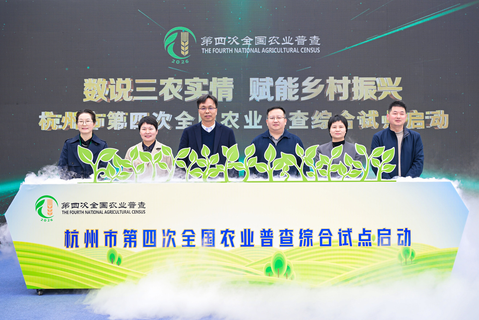 3月17日,杭州市第四次全国农业普查综合试点启动仪式在临安区太湖源镇举行。杭州市第四次全国农业普查领导小组副组长、市统计局党组书记局长徐国伟出席活动,市农普办主任周展、临安区副区长罗爱芬等领导参加启动仪式。best365手机版官方网站党委副书记曹磊参加启动仪式。