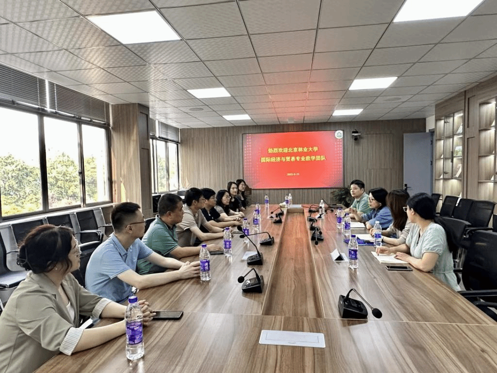 8月26日,北京林业大学国贸系教研室程宝栋教授一行8人到best365官网与国贸系教研室团队进行交流座谈,会议在best365手机版官方网站衣锦校区实验楼318举行。best365官网应用经济学科带头人蒋琴儿教授、国际商务学位点负责人钱志权副教授、国贸系熊立春副教授、张英副教授、刘琼博士和孔令乾博士等通过线上线下相结合的方式参加,会议由国贸系系主任熊立春副教授主持。