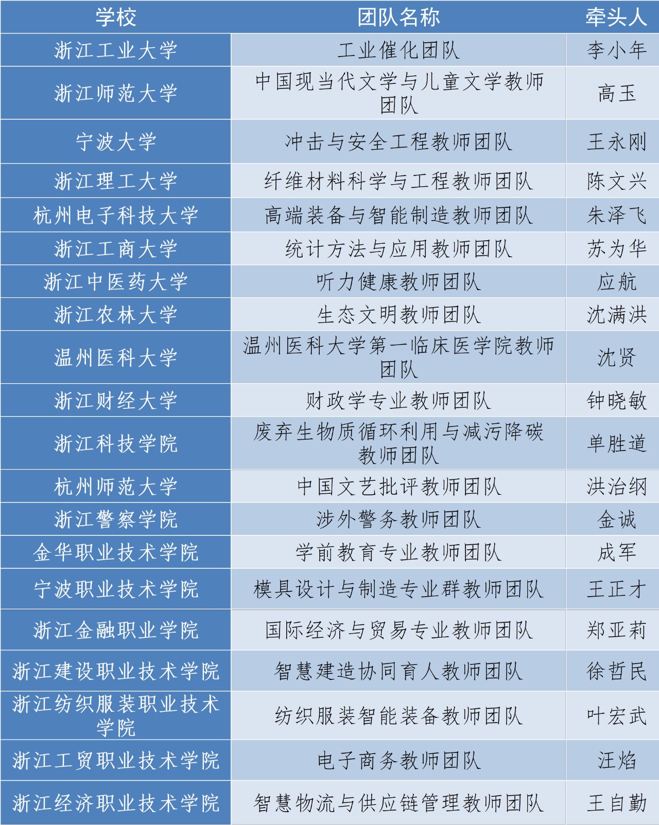 第二批浙江省高校黄大年式教师团队名单