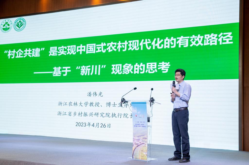 浙江大学中国农村发展研究院首席专家黄祖辉,浙江工商大学原校长、浙商研究院院长陈寿灿,北京师范大学中国乡村振兴与发展研究中心主任张琦,湖州师范学院“两山”理念研究院名誉院长王景新,best365官网教授潘伟光分别就《新型农村集体经济发展之路》《浙商赋能乡村振兴:共富场域与实践路径》《“八八战略”与“新川模式”一中国式乡村现代化发展创新实践》《振兴乡村亟待振兴乡镇企业——新川20年变迁发展的案例及启示》《村企共建是实现中国式农村现代化的有效途径》等主题作主旨发言。