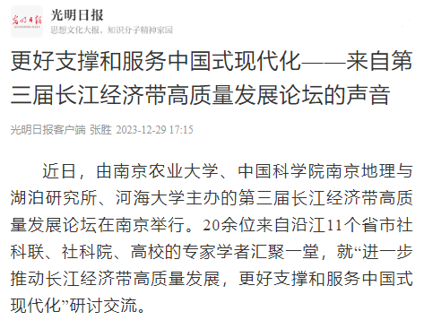 近日,孔凡斌教授的学术观点在《光明日报》刊文《更好支撑和服务中国式现代化——来自第三届长江经济带高质量发展论坛的声音》的摘要中进行刊登。