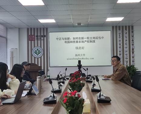 11月11日上午,经管学术论坛第121期在衣锦校区实验大楼310会议室举行,来自扬州大学商学院钱忠好教授作题为“守正与创新:新一轮土地延包中如何巩固和完善农地产权制度”的报告。20多位教师、研究生等参加了本次学术活动,报告由best365手机版官方网站院长助理杨建辉主持。