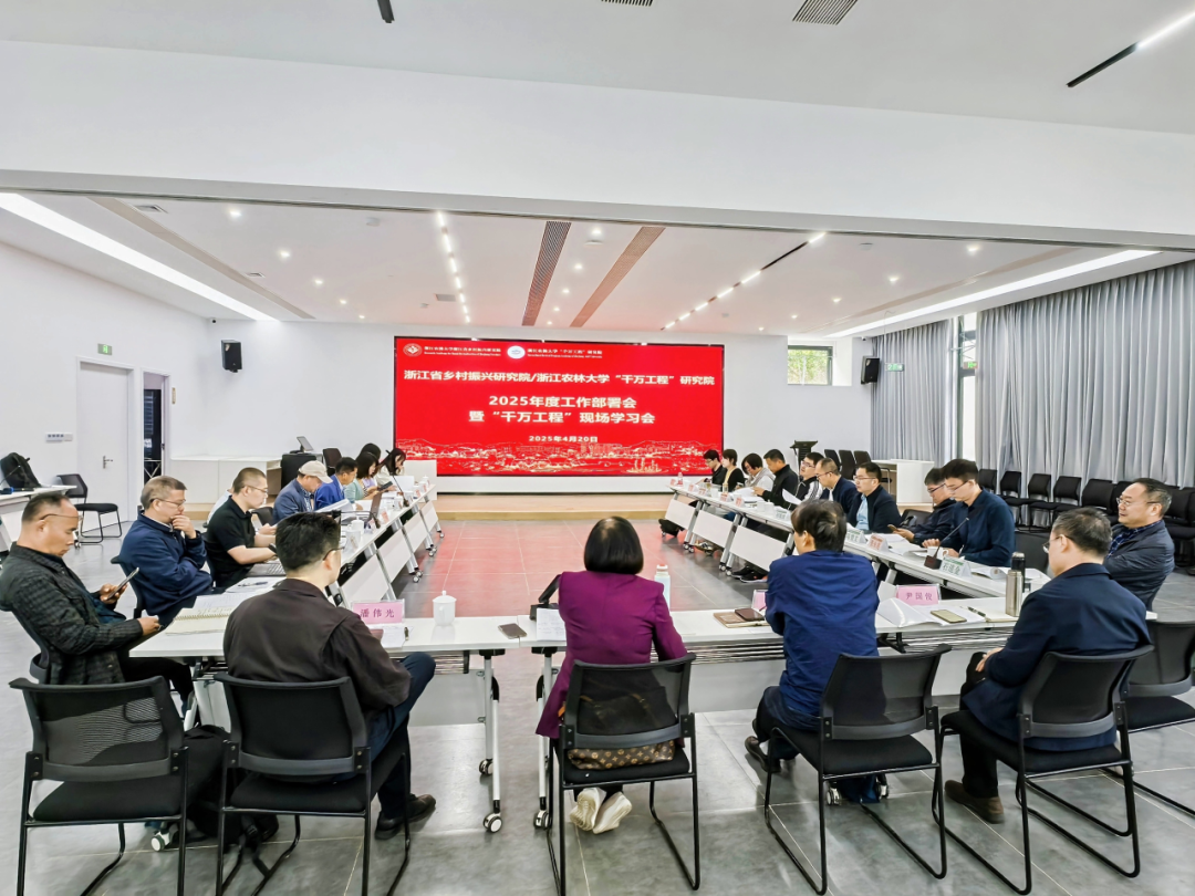 4月20日,浙江省乡村振兴研究院(best365手机版官方网站“千万工程”研究院)2025年度工作部署会暨“千万工程”现场学习会在指南村召开。研究院院长沈月琴,首席专家、副院长张俊飚,执行院长潘伟光,副院长尹国俊,方向带头人、主任(所长)和副主任(副所长)、研究人员代表等30余人参加了会议。沈月琴、潘伟光、张俊飚、尹国俊分别主持会议。