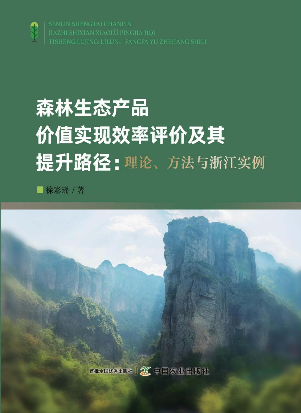 由徐彩瑶副教授完成的学术专著《森林生态产品价值实现效率评价及其提升路径:理论、方法与浙江实例》已由中国农业出版社正式出版,著作总字数33万余字。著名生态经济学和林业经济学专家孔凡斌教授为本著作作序,对本著作成果给予了充分肯定和高度评价。本著作是徐彩瑶副教授主持承担的国家自然科学基金青年项目、浙江省软科学研究计划项目和浙江省哲学社会科学规划课题联合资助的重要成果。著作率先运用生态经济学基本理论和多学科技术方法构建森林生态产品价值实现效率水平的评价指标体系和方法体系,基于海量数据,依托遥感和地理信息系统平台,量化评价森林生态产品价值实现效率水平及其多维时空演变规律,解构影响森林生态产品价值实现效率的多维关键因素,结合浙江省丰富的实践探索经验,提出全面提升森林生态产品价值实现效率促进现代林业产业高质量发展的解决方案。该著作是国内首次开启自然资源生态产品价值实现程度量化评价科学研究的一次重要尝试。