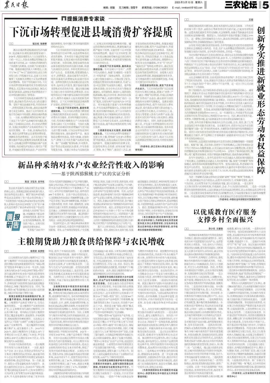 2025年5月10日,钱志权教授与张婷婷合作撰写的理论文章《下沉市场转型促进县域消费扩容提质》发表在《农民日报》(理论版)三农论坛头条,提振消费专家谈上。