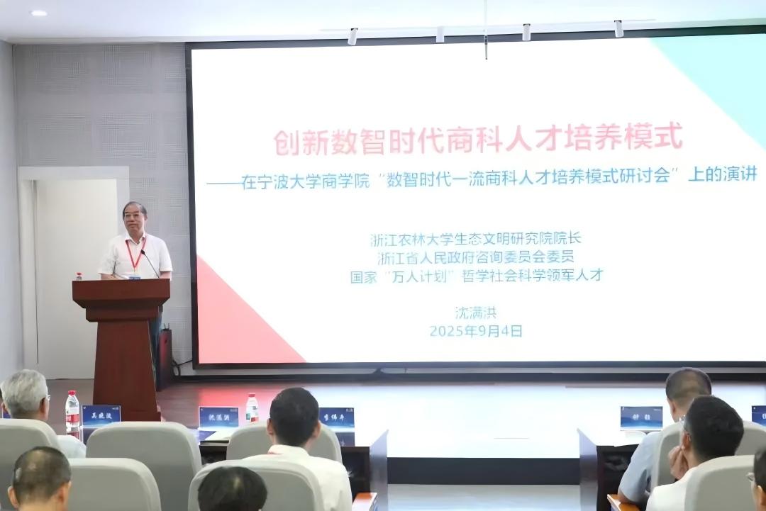 9月4日,沈满洪教授和顾光同教授应邀参加宁波大学商学院举办的“数智时代一流商科人才培养模式研讨会”,分别在主题报告环节与金融学分论坛环节做深度演讲报告,为商科人才培养体系创新提供创新思路。