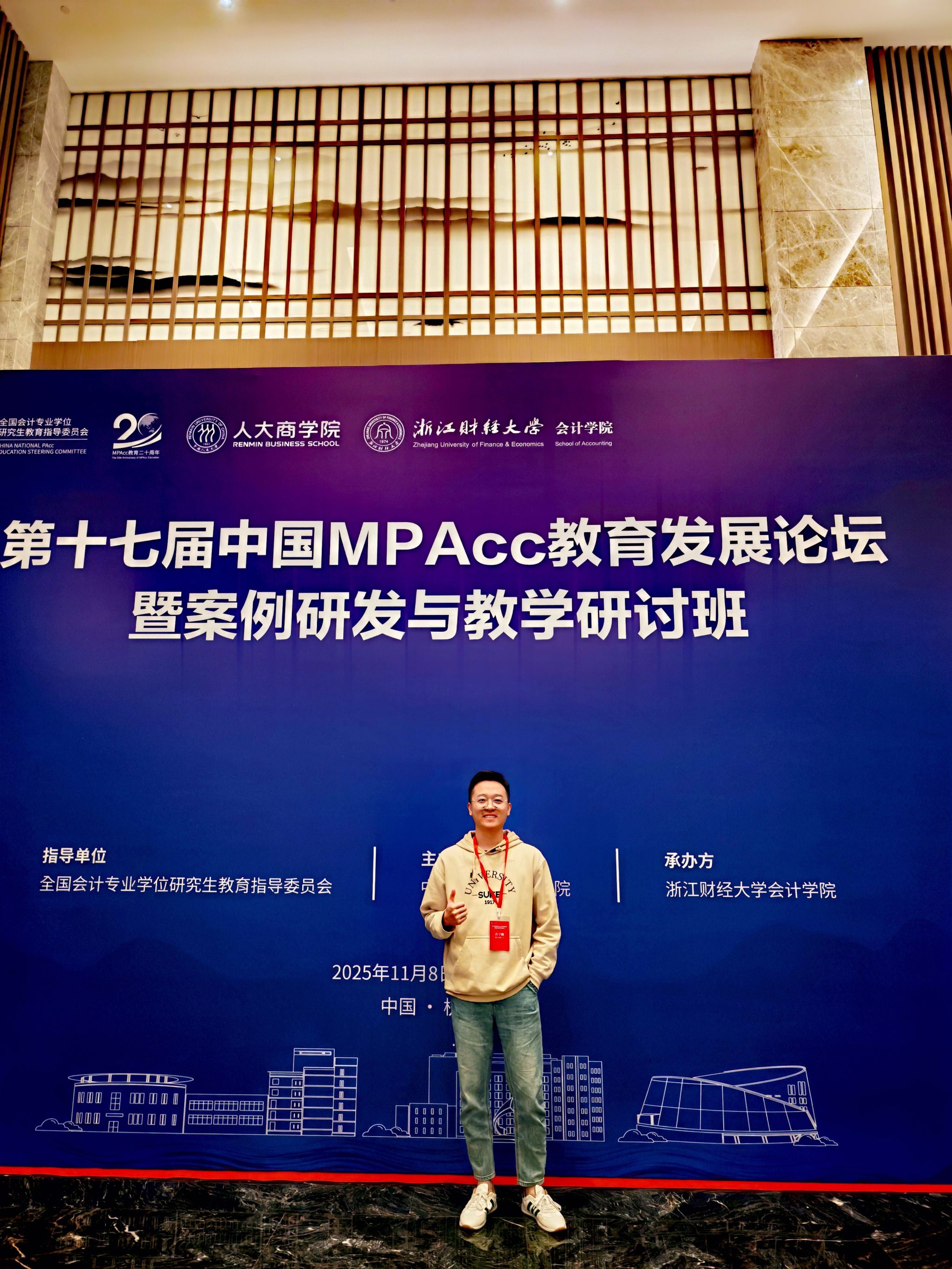 2025年11月8日至9日,由中国人民大学商学院主办,浙江财经大学会计学院承办的“第十七届中国MPAcc教育发展论坛暨案例研究与教学研讨班”在杭州举行,来自全国近150家MPAcc培养单位的230多位专家学者参加培训,best365官网会计学科许宇鹏副教授也应邀参加了本次论坛。