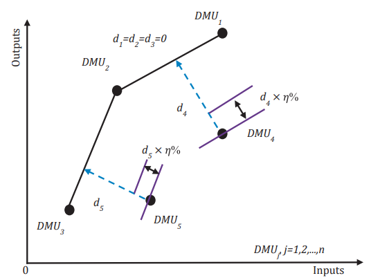 该论文题为“Estimation of optimal resource allocation for Universities’ industry-education integration: A novel inverse network DEA model with shared inputs”,立足运筹学优化领域,针对传统逆数据包络分析(DEA)模型难以刻画系统内部多阶段资源流动与关联,以及效率优化中易出现前沿面漂移、基准不一致等问题展开研究。作者构建了一个规模报酬不变(CRS)的新型逆网络 DEA 模型,具备生产可能集(PPS)非空、闭合和凸性等性质,保证可行域有界、最优解唯一。可能的边际贡献为:一是系统讨论了共享投入和固定中间产品条件下的建模方法,准确刻画多阶段、跨环节的投入产出关系;二是提出前沿面保持机制,在效率提升过程中保持原始 DEA 前沿面不变,避免传统模型中基准变化带来的结果偏差,提升了分析的可比性和解释性(见图1);三是构建了覆盖四种典型情形的统一分析框架,可灵活应对“效率不变或提升”与“投入增加或产出目标提高”等不同组合下的资源优化需求。实证以某高校资源配置为案例,结果表明模型可精准识别资源利用效率差异与优化空间,为教育领域资源效益提升提供决策支撑。