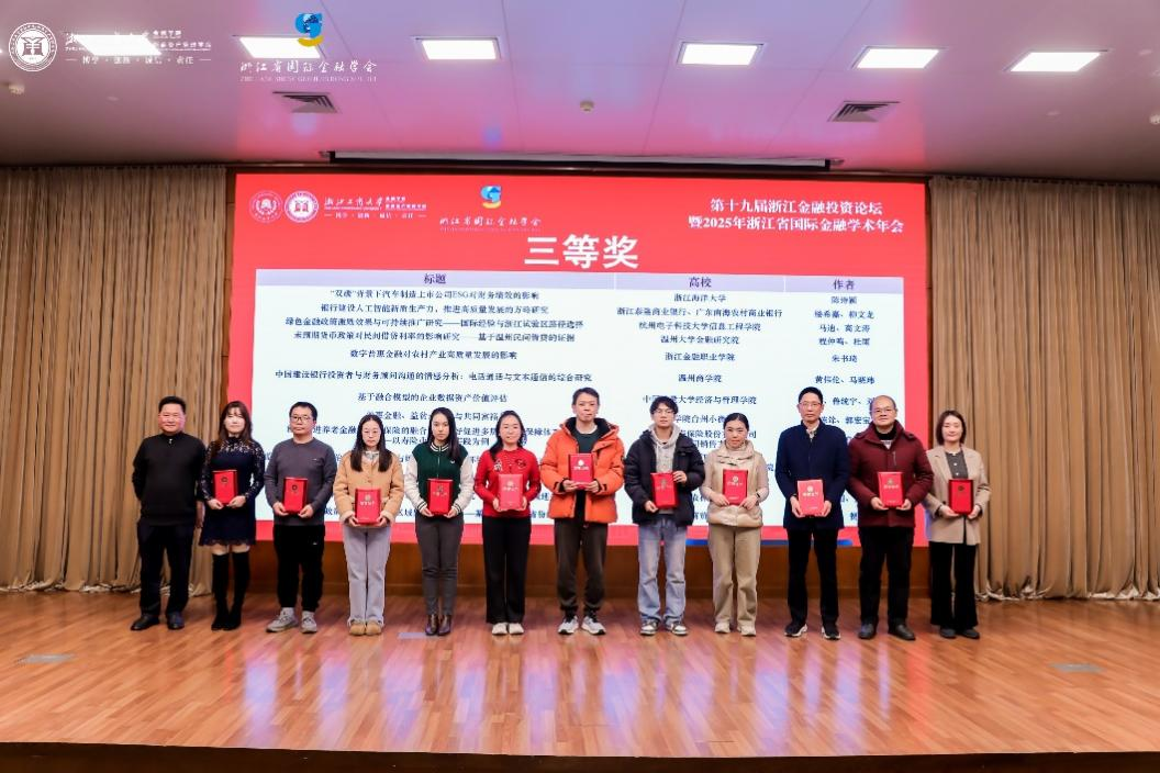 2026年1月17日下午,由浙江省国际金融学会、科技金融时报、浙江工商大学金融学院(浙商资产管理学院)以及浙江金融投资论坛组委会主办的“第十九届浙江金融投资论坛暨2025年浙江省国际金融学术年会”在杭州召开。来自省相关部门领导,金融机构、会员单位、高校院所(学术联盟)的专家学者以及特邀企业家代表、媒体等200余人参加。best365官网应用经济学学科金融工程专业负责人顾光同教授,专任教师李玉文教授、刘秀芬博士、孙阳阳博士、王跃博士以及研究生代表一同应邀参会交流。