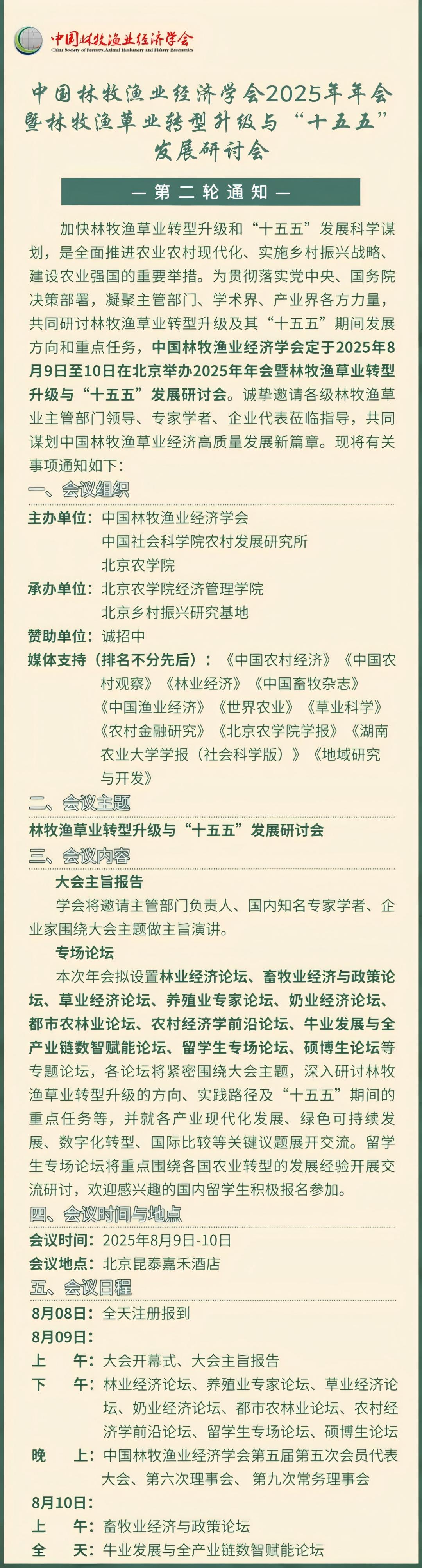 中国林牧渔业经济学会2025年年会暨林牧渔草业转型升级与“十五五”发展研讨会(第二轮通知)