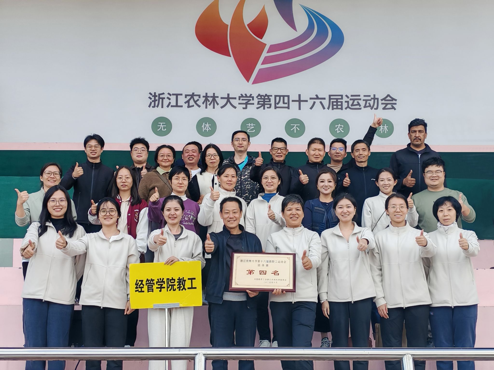 在我校刚刚圆满结束的第四十六届运动会暨第十六届教职工趣味运动会上,best365手机版官方网站教职工代表队团结一心、奋勇拼搏,最终以团体总分65分的优异成绩,荣获全校第四。