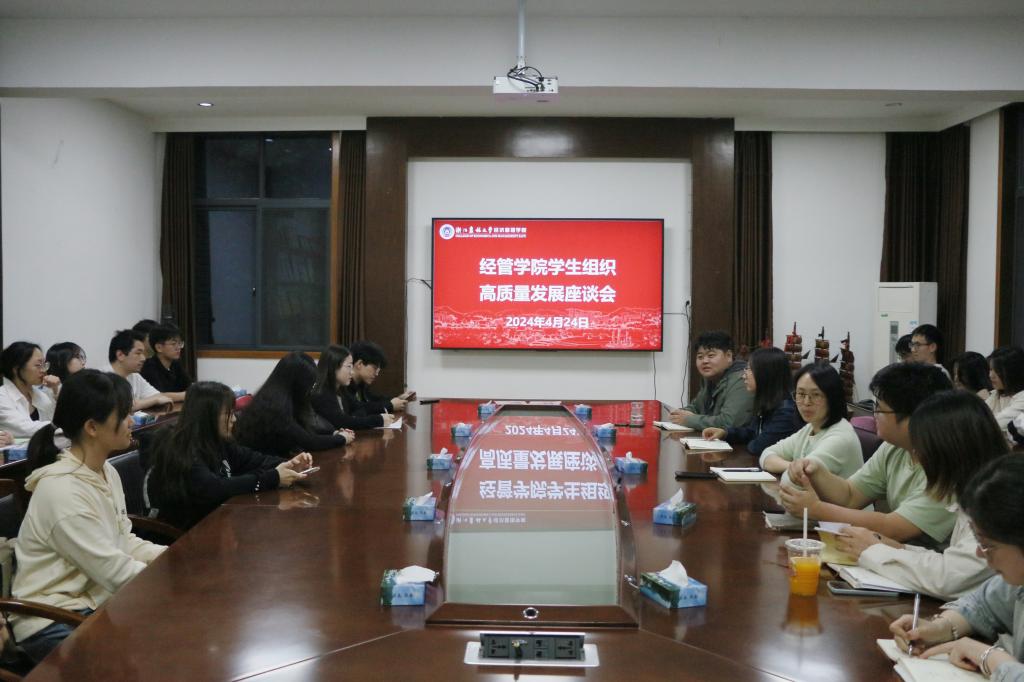 4月24日晚,best365手机版官方网站成功举办学生组织高质量发展座谈会。学院学生工作负责人胡云云主持会议,与院团委书记钟程凯、学生会秘书长蔡广越、辅导员及各部门负责人、优秀工作者共同探讨学生组织的挑战和未来发展。