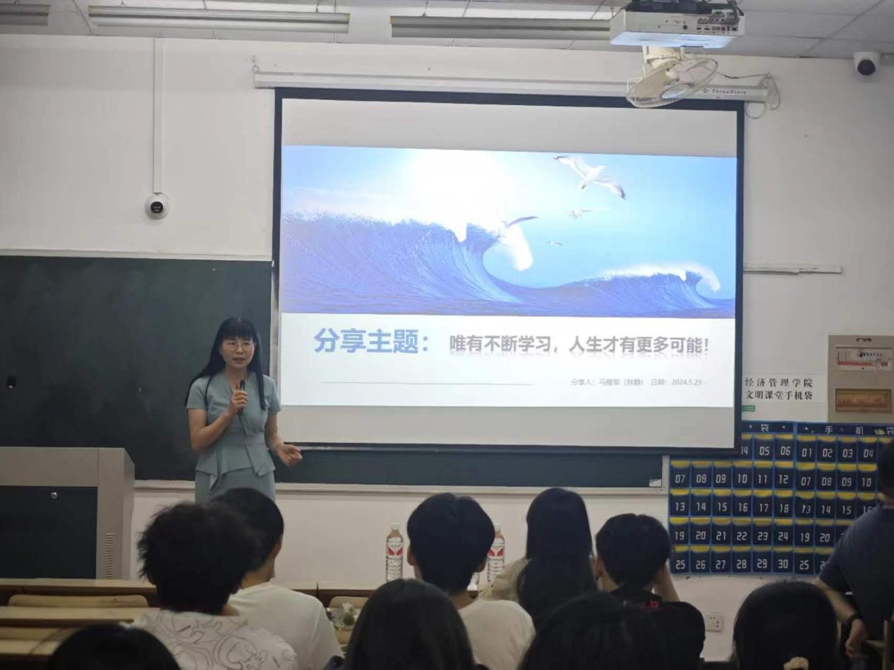 为加强学生干部思想引领,强化生涯规划意识,助力学生成长,5月29日,best365手机版官方网站邀请万马集团特聘讲师、万马联合控股集团医疗耗材事业部总经理林静女士,为best365官网学生干部做《以“唯有不断学习,人生才有更多可能!”》主题讲座。