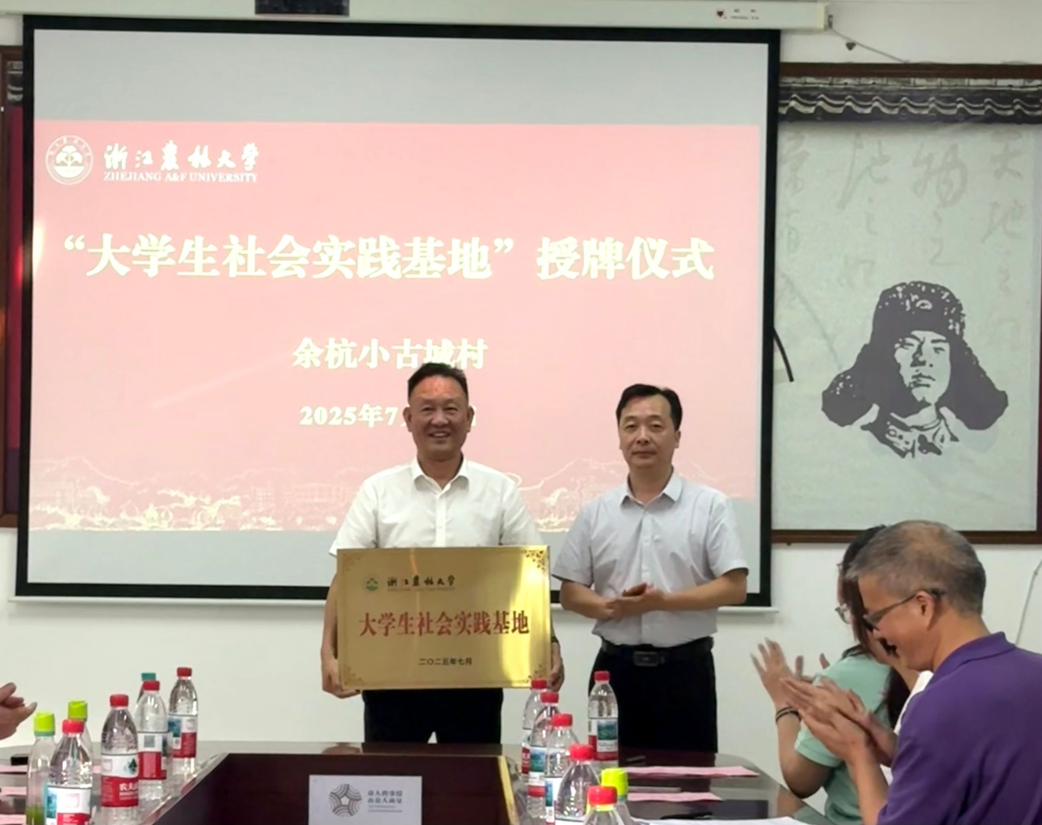 座谈会上,倪建均充分听取best365手机版官方网站社会实践特色亮点及2025年暑期社会实践的安排,详实了解小古城村发展的历程及学校师生深入小古城村实践调研情况。对best365手机版官方网站扎实开展暑期社会实践表示充分肯定,对小古城村给予学校提供便利的社会实践条件表示感谢。为进一步加强校地社会实践合作,会上,倪建均代表学校为小古城村授予“best365手机版官方网站大学生社会实践基地”铜牌。