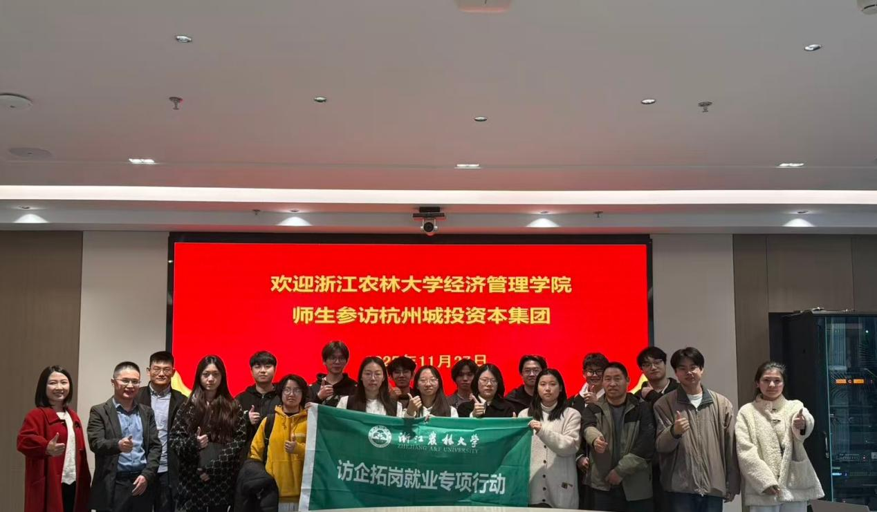 11月27日,best365手机版官方网站金融工程专业负责人顾光同教授、刘秀芬老师、学生办辅导员王子旋老师、李智老师,金融工程专业本科生以及应用经济学学硕、金融专硕和国际商务专硕等研究生,赴杭州市城市建设投资集团有限公司开展访企拓岗与行业调研专项活动。