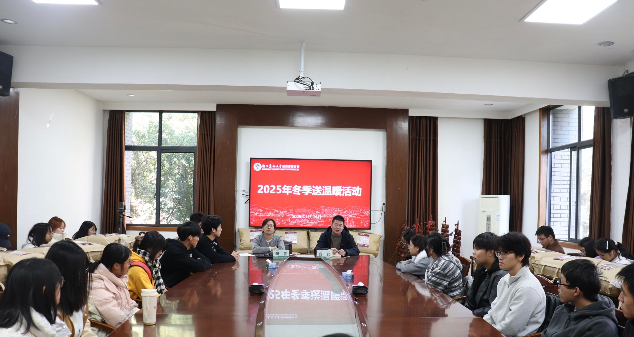 为进一步鼓励支持资助对象安心求学,11月26日,经济管理学院开展2025年冬季送温暖活动。学院党委副书记曹磊、学生办主任龚芸、辅导员钟程凯、陈琪,以及受资助学生代表参加活动。
