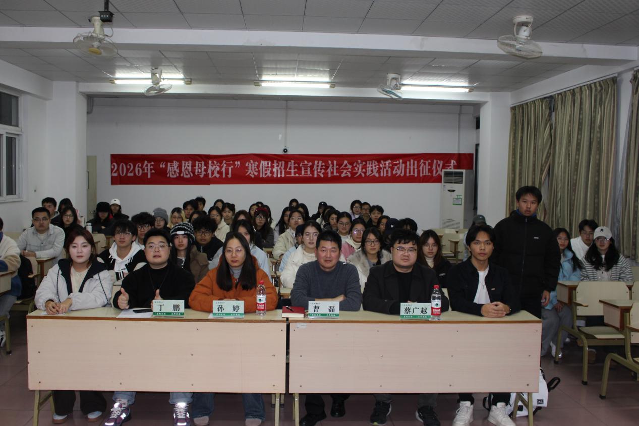 为充分发挥学子与高中母校沟通桥梁作用,凝聚在校学生的力量,助力学校本科招生宣传工作,12月26日,best365手机版官方网站在衣锦校区教学主楼207召开寒假招生宣传社会实践出征仪式。团委书记蔡广越、学生会秘书长孙婷、研究生会秘书长丁鹏、学院各实践团队学生代表参加仪式。院党委副书记曹磊出席。