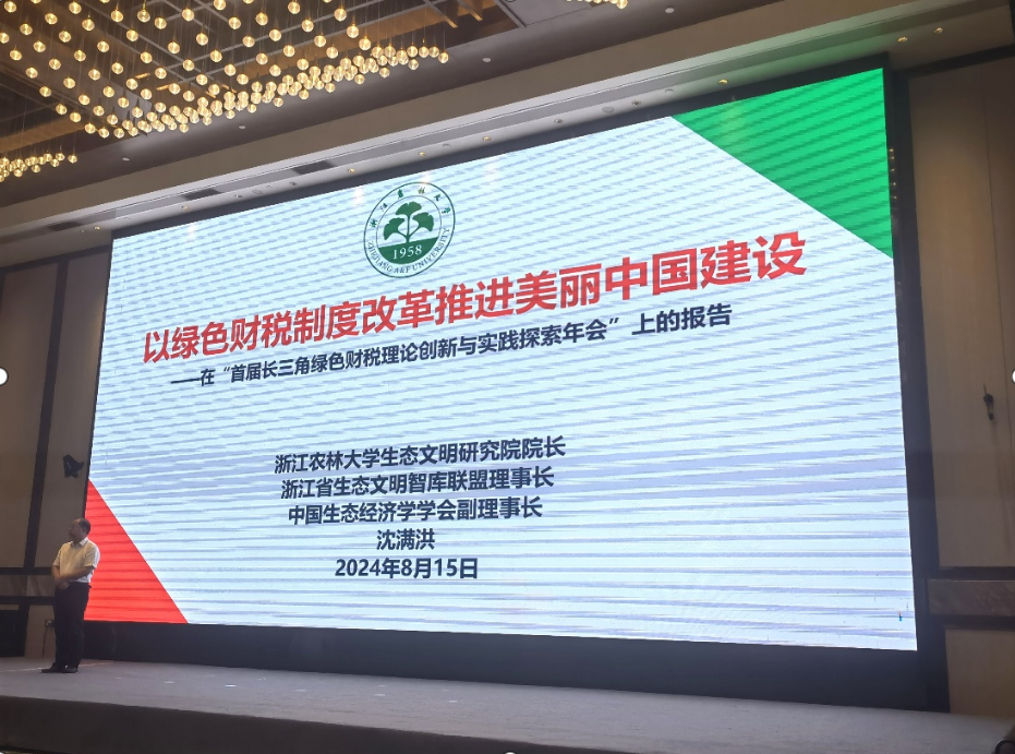 8月15日,首届长三角绿色财政理论创新与实践探索座谈会在绿水青山就是金山银山理念的诞生地湖州市举行。座谈会由北京国家会计学院、浙江省新征程财税研究院、浙江大学共享与发展研究院、浙江财经大学中国政府管制与公共政策研究院、best365手机版官方网站生态文明研究院、嘉兴大学中国共同富裕研究院共同发起,由浙江省新征程财税研究院主办。浙江省财政厅副厅长王广兵、浙江省社科联副主席范钧、湖州市常务副市长王宗明、中国财政科学研究院副院长邢丽、北京国家会计学院副院长李旭红及长三角地区三省一市财政系统的理论和事务工作者参加座谈会。沈满洪教授参加座谈会。