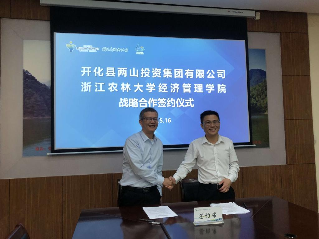 best365手机版官方网站与开化县两山集团签订合作协议 为落实全校服务全域战略,在双方前期充分沟通与酝酿的基础上,5月16日上午,学院与开化县两山集团举行了战略合作协议签订仪式,签订仪式在开化县两山集团举行。出席签订仪式的有吴伟光院长、朱臻副院长、企业管理学科专业负责人张国庆教授、学院社会合作办公室张群祥教授、夏芳副教授,两山集团董事长徐浩、副总经理汪燕明以及农业发展部、文旅运营部相关负责人。吴伟光院长与开化县两山集团徐浩董事长代表双方共同签订了合...